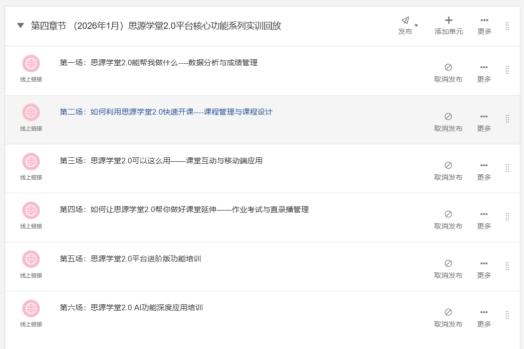 教师可进入课程《AI赋能讲授培训及思源私塾2.0功能引见》第四章节随时查阅。