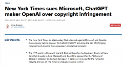 《纽约时报》提及的一个AI系统不合理利用其内容并形成丧失的例子是,《纽约时报》12月27日就版权告状OpenAI和微软。进而导致了收入丧失。但弥补说,纽...